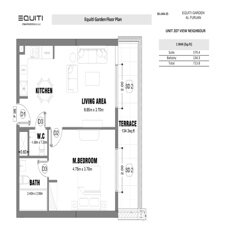 - Property Name: Equiti Garden, Al Furjan – 1BHK Fully Furnished Apartment for Sale