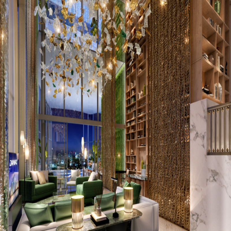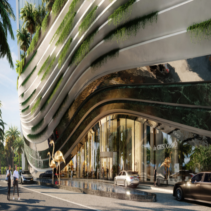Branded by the world-renowned Swiss jeweller **de GRISOGONO**, Safa One draws inspiration from the brilliance of emeralds and diamonds, blending tropical elegance with cutting-edge architectural design. The towers rise gracefully above the skyline, wrapped in cascading greenery and shimmering glass façades that redefine luxury living in central Dubai.