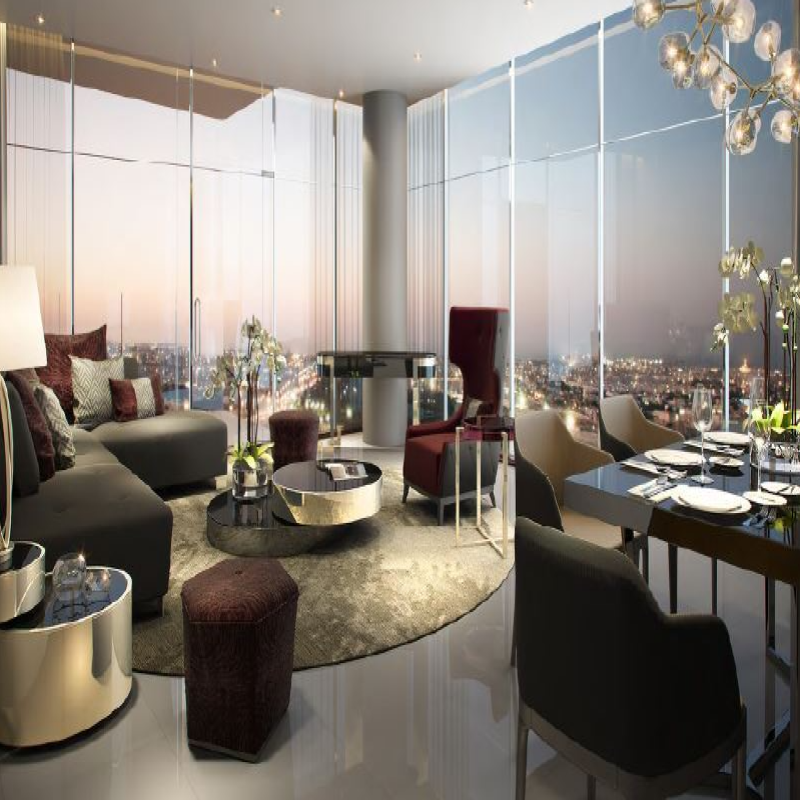 Strategically positioned as a gateway to the prestigious Burj area, AYKON City blends striking architecture with resort-style amenities in one of Dubai’s most sought-after locations. Featuring both serviced apartments (Tower B) and luxury residences (Tower C), the project offers panoramic views stretching from Sheikh Zayed Road to the Arabian Gulf and across Business Bay .
